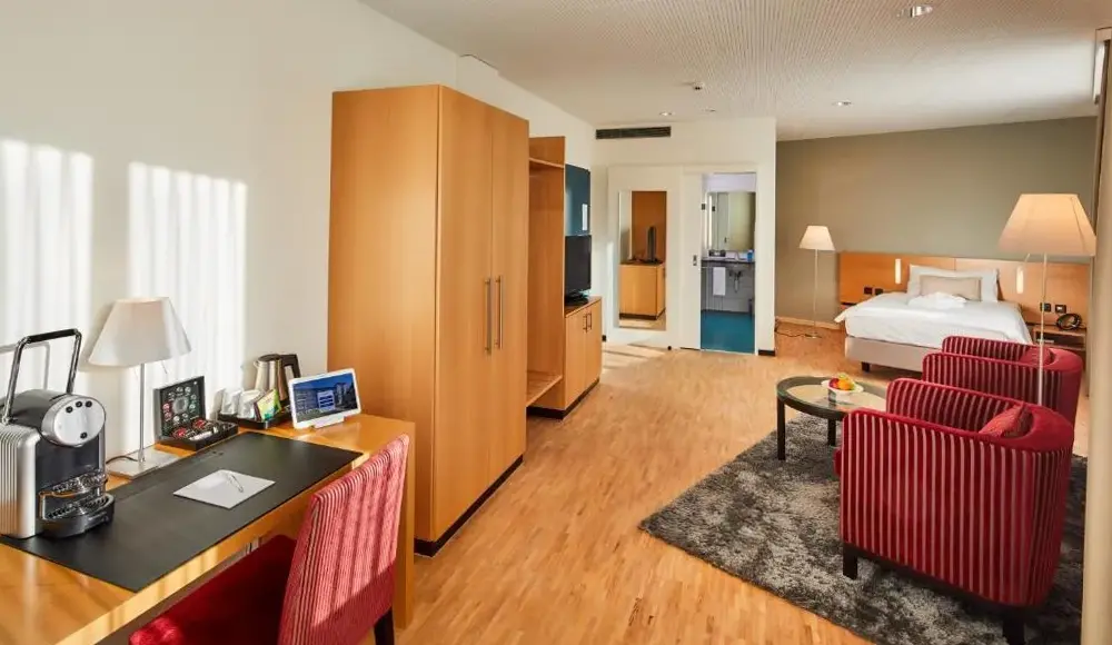 Bei der Buchung waren bereits alle Parkplätze belegt. Deshalb haben wir in der Stadt geparkt, mit Rabatt im Parkhaus Indigo Kleber. Aber das war immer noch teuer. 84 Euro für 3 Tage.